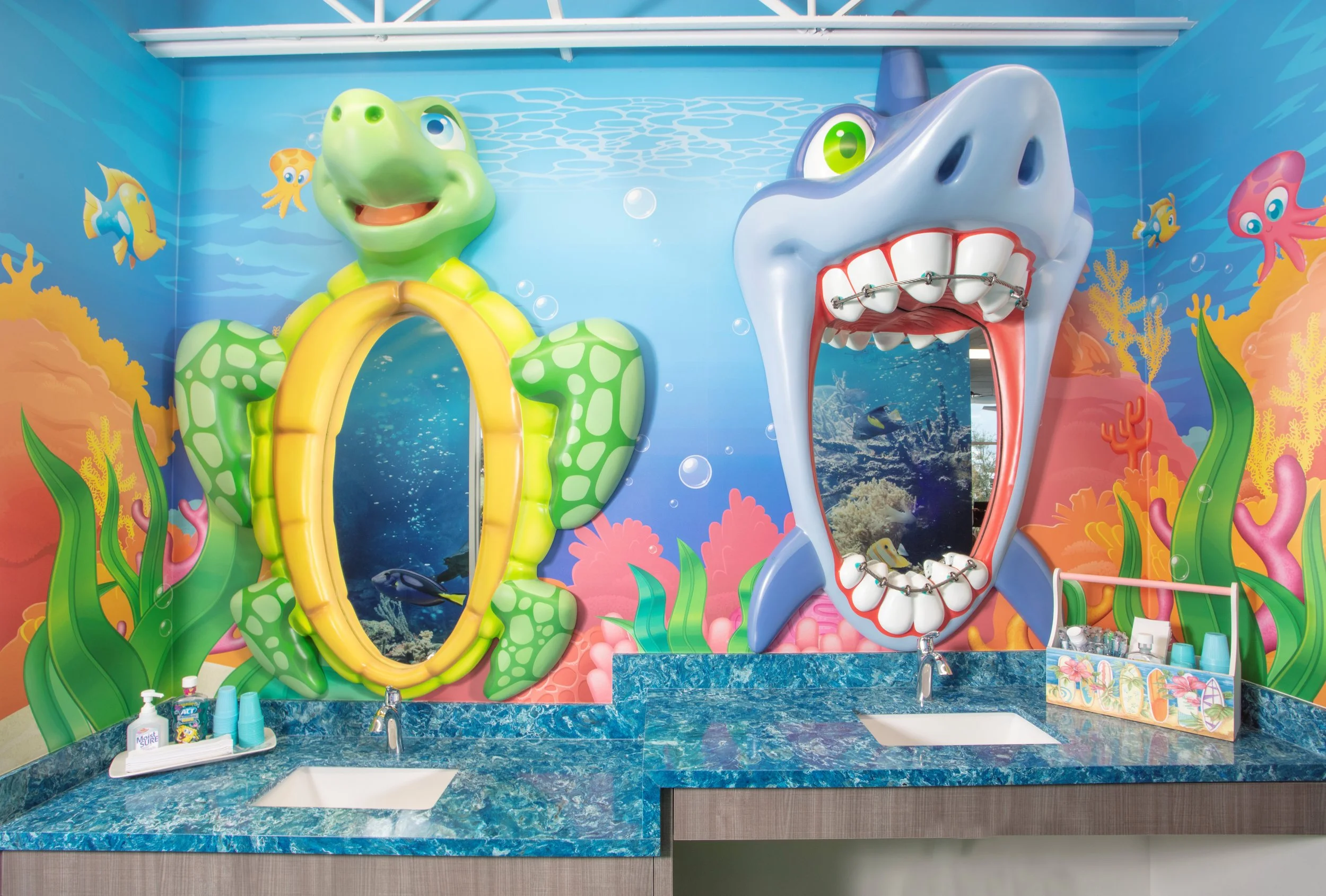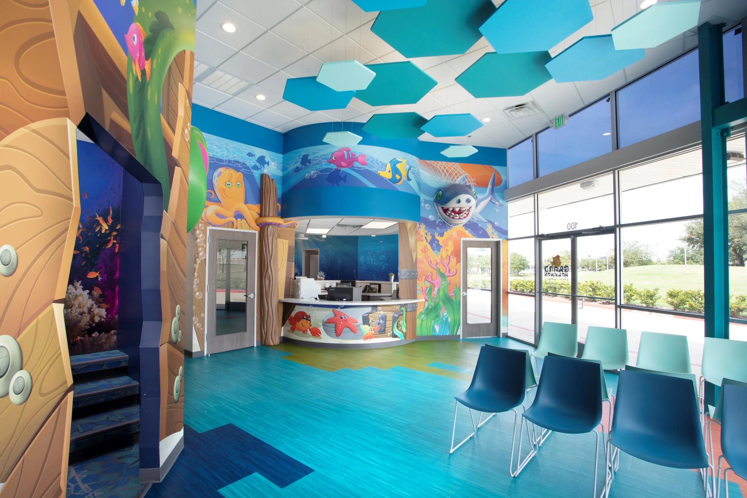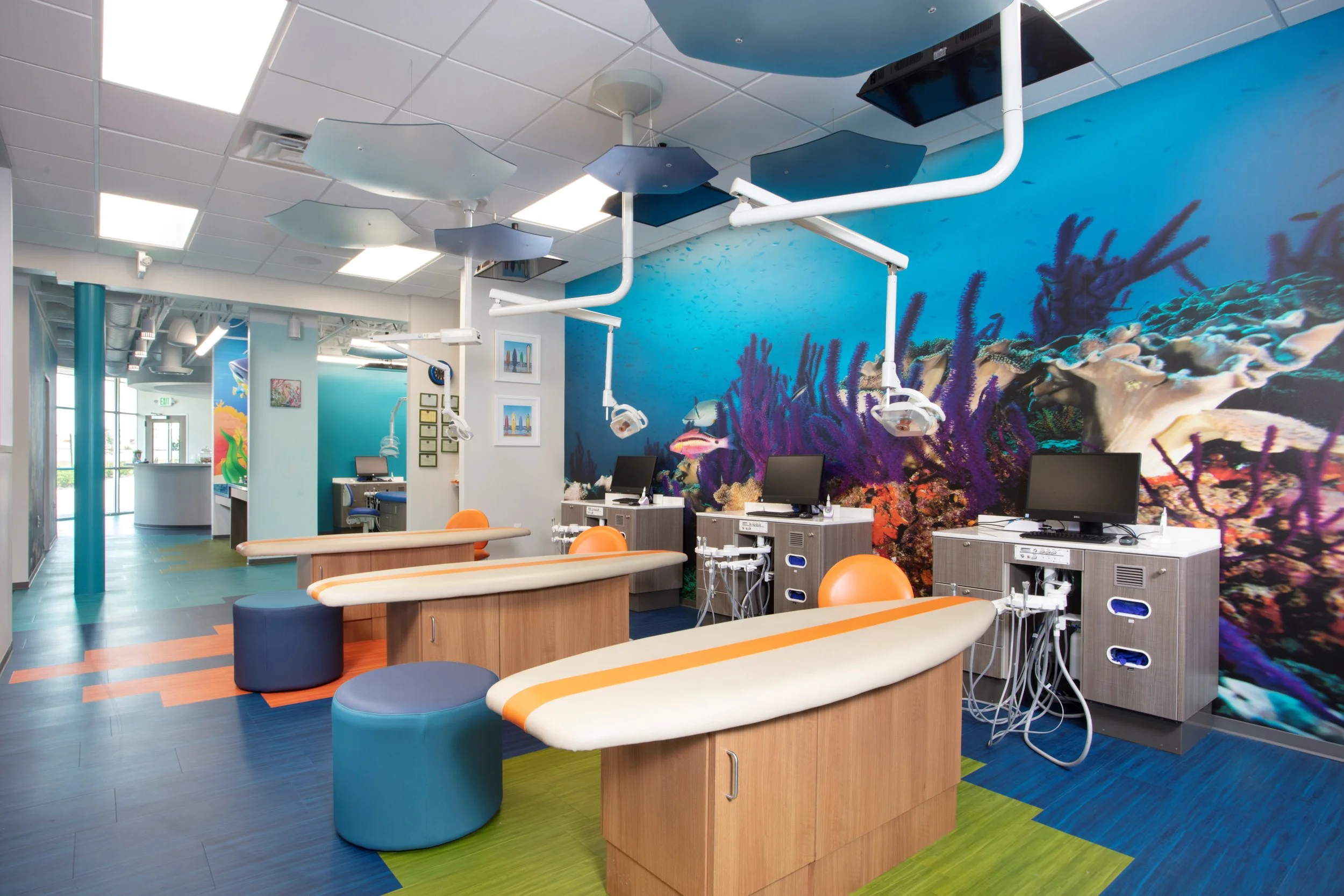 Collaborating closely with the practicing doctor, we aimed to manifest his vision of an underwater experience without submerging the actual practice. This vision inspired various design elements that evoke a sense of the ocean. The surfboard exam tables provide a playful touch, while the 3D wall murals create an immersive environment. Additionally, we incorporated depictions of beloved ocean creatures throughout the space, enhancing the overall theme. This project truly exemplifies how thoughtful design can transform a pediatric dental office into an engaging and enjoyable atmosphere for children and parents alike.